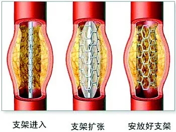 治療時,醫(yī)生先將極細的導管通過血管伸到動脈狹窄的部位;然后,用一個球囊將狹窄部位撐開(球囊擴張);最后,將動脈支架撐在已被擴張的動脈狹窄處,防止其回縮。退出所有的導管后,動脈支架就留在了已經(jīng)被擴張的動脈狹窄處。