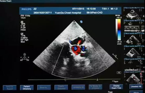 醫(yī)生通過(guò)在患者體表移動(dòng)探頭,能清楚地看到心臟結(jié)構(gòu),相當(dāng)于醫(yī)生的“透視眼”,如心壁厚薄、心腔大小、心臟瓣膜啟閉等情況,還能直觀顯示心肌的運(yùn)動(dòng)狀況及血流動(dòng)力情況,提示心肌缺血的部位等,且對(duì)人體沒(méi)有任何損傷。
