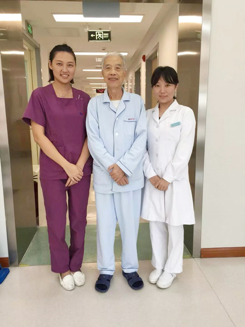 術(shù)前因為長期的心力衰竭馬老的日?;顒雍瓦\(yùn)動耐力明顯降低。術(shù)后的康復(fù)不僅要恢復(fù)馬老的體能和運(yùn)動能力,而且還要有效的治療術(shù)后的各種并發(fā)癥和合并癥。在這25天中,我們醫(yī)護(hù)人員和馬老一起解決了一個個治療難題,在出院時血小板減少、房顫、低蛋白血癥、心包積液得到糾正,心功能不全和左上肢神經(jīng)損傷造成的肢體麻木得到良好改善。